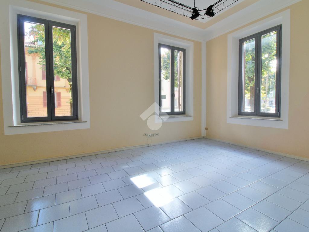 VOGHERA - VIA GRAMSCI in zona centrale, ben collegata ai principali servizi e di forte passaggio proponiamo, in piccola palazzina d'epoca, appartamento di ampia metratura. L'immobile, ad uso ufficio e posto al piano rialzato, è così composto: ampio ingresso su locale ad uso reception, sette locali più doppi servizi. L'appartamento si affaccia su cortile interno condominiale, con possibilità di posto auto. L'immobile dispone di serramenti nuovi con triplo vetro, impianto elettrico recente, riscaldamento termoautonomo e due ampie cantine.